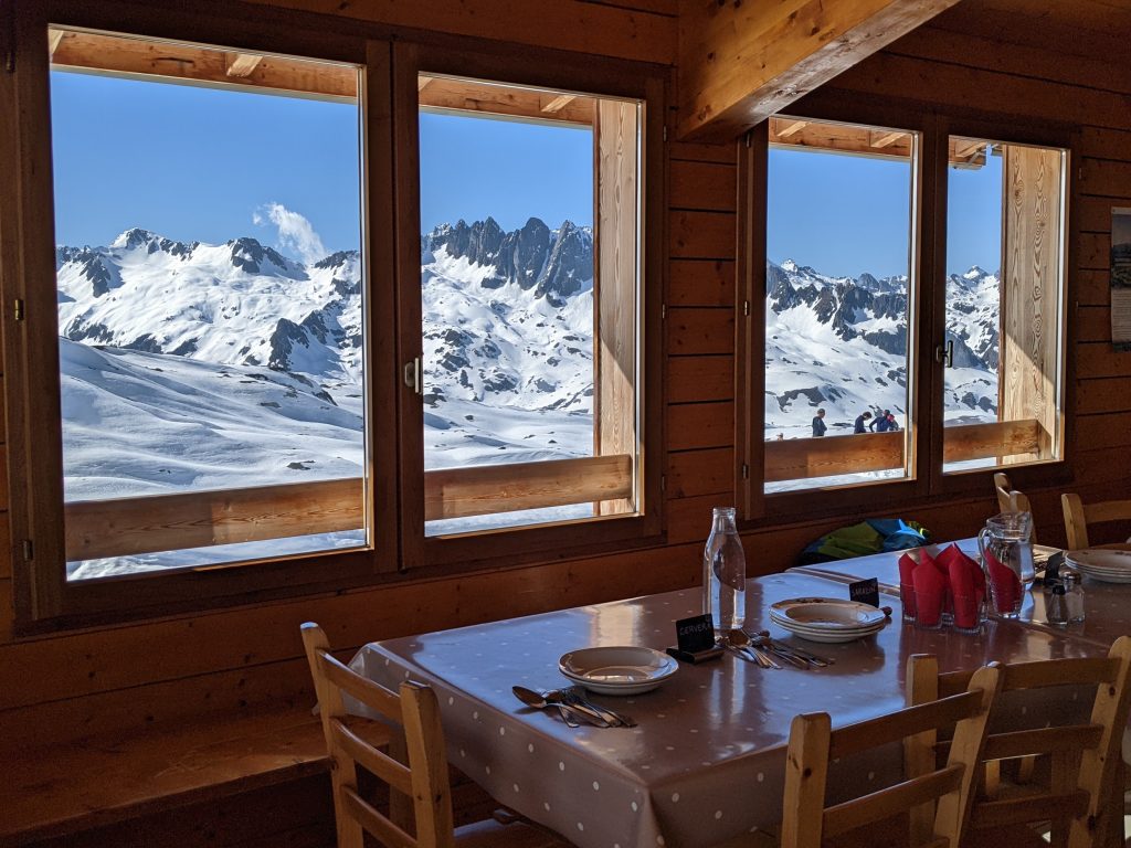 Départ en train pour ma part cette fois-ci, Olivier venant me chercher en gare de Chambéry avant de poursuivre vers Saint-Sorlin-d’Arves où nous nous garons, face au départ du sentier de randonnée qui, l’hiver, fait place aux pistes de ski. Pistes que nous remontons en longeant la combe de la Balme, avant de poursuivre jusqu’au col Nord des Lacs à 2 533 m d’altitude. Le refuge est alors à portée de raquettes environ 100 m en-dessous. Nous sommes chaleureusement accueillis et finissons par souffler un peu en comatant non loin du poêle (éteint). Vient l’heure du repas, (presque) toujours excellentissime en refuge de haute montagne. C’est une fois encore le cas avec, en guise de digestif, quelques lampées de Limoncello pour tous les convives.