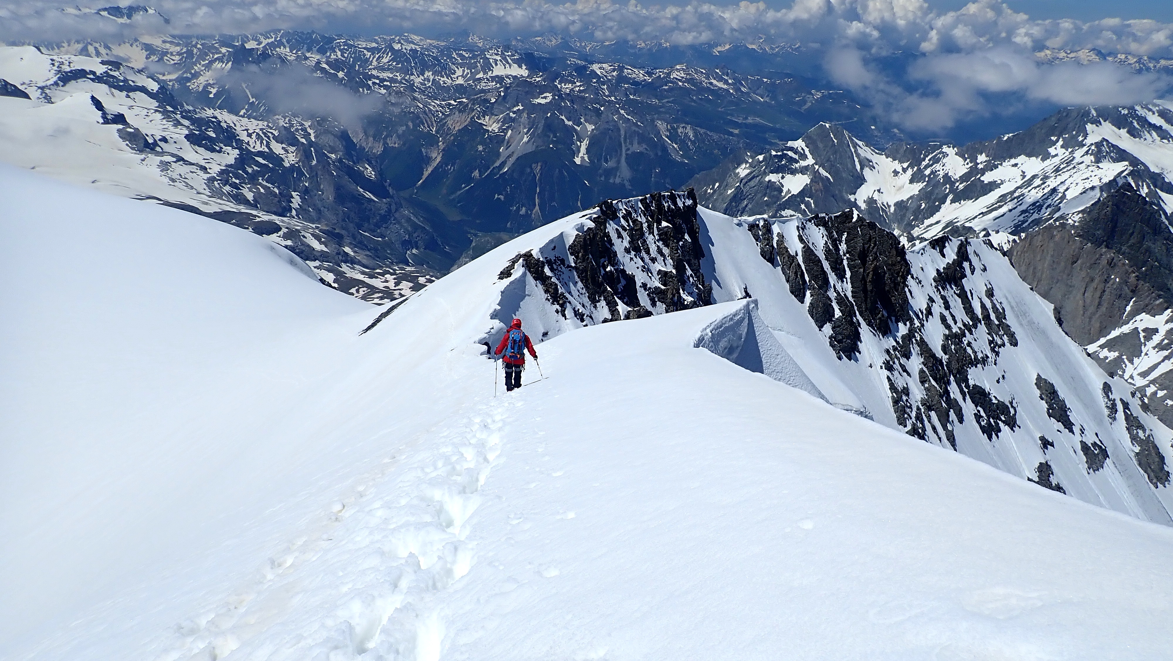 Voilà des années que nous rêvions de gravir le plus haut sommet de la Vanoise par cette élégante voie qu’est la petite face Nord (https://goo.gl/ouKicc). Nous avions tenté une première approche en avril dernier sans toutefois pouvoir mener notre projet à bien. Nous avions fait demi-tour au col de la Grande Casse, c’est à dire au pied des difficultés, à cause d’un virus pas tout à fait évaporé dans mes bronches. Deux mois après, ce fut la bonne !