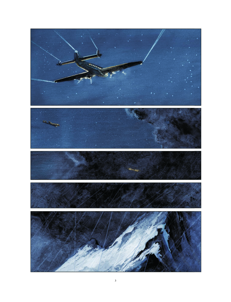 Et puis survient un accident d’avion très haut dans la montagne, un quadrimoteur pris dans la tempête et qui disparait. Ce crash est librement inspiré par le drame du Malabar Princess qui percuta le glacier des Bossons dans le massif du Mont Blanc en 1950. Tous les passagers perdirent la vie, et très vite la légende d’un fabuleux trésor fit saliver bien des habitants des vallées alpines. Henri Troyat conte cette histoire dans son roman La neige en deuil dont la BD reprend le titre. L’écrivain et biographe met en scène l’avidité du cadet face à son frère ainé qui, poussé à bout par le premier, acceptera de le guider sur les lieu du crash. La fin de l’aventure est abrupte et aussi glaçante que le souffle du vent à 4000 m d’altitude…