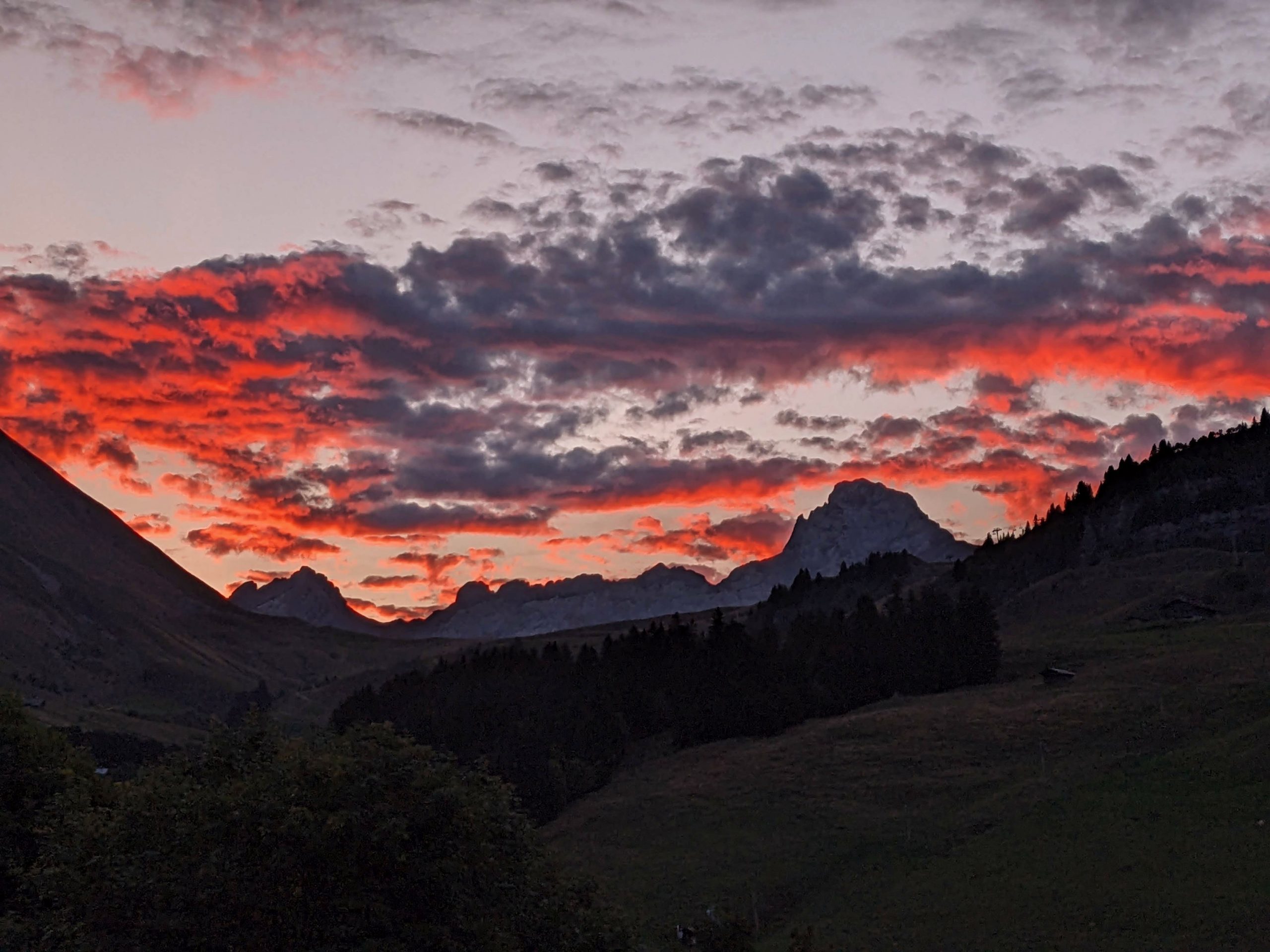 Notre virée automnale qui devait se dérouler au Mont Viso, aura finalement pris la direction des Aravis et ses parois d’escalade équipées. Non pas que nous manquions de temps, mais la météo capricieuse avait saupoudré de neige une partie des Alpes, et nous ne souhaitions pas nous retrouver à bivouaquer à 3800 m d’altitude dans des conditions non optimales… on a déjà connu ! Nous voilà donc partis en compagnie de deux blablacaristes sympathiques en direction d’Annecy d’abord, puis du Chinaillon ensuite, commune située au-dessus du Grand Bornand. Nous attendait là un studio Airbnb cosy dans un ensemble immeuble-chalet totalement vide à cette époque de l’année. Il était idéalement situé à 10 minutes environ du site d’escalade du pic de Jallouvre en direction du col de la Colombière, si bien que nous n’avons pas eu à nous lever à point d’heure pour pratiquer notre activité favorite. Cette première journée a donné le ton des jours suivants, à savoir un rythme endiablé visant à exploiter à fond ce créneau de 4 jours. Du reste, mes genoux s’en souvenaient encore une semaine plus tard !
