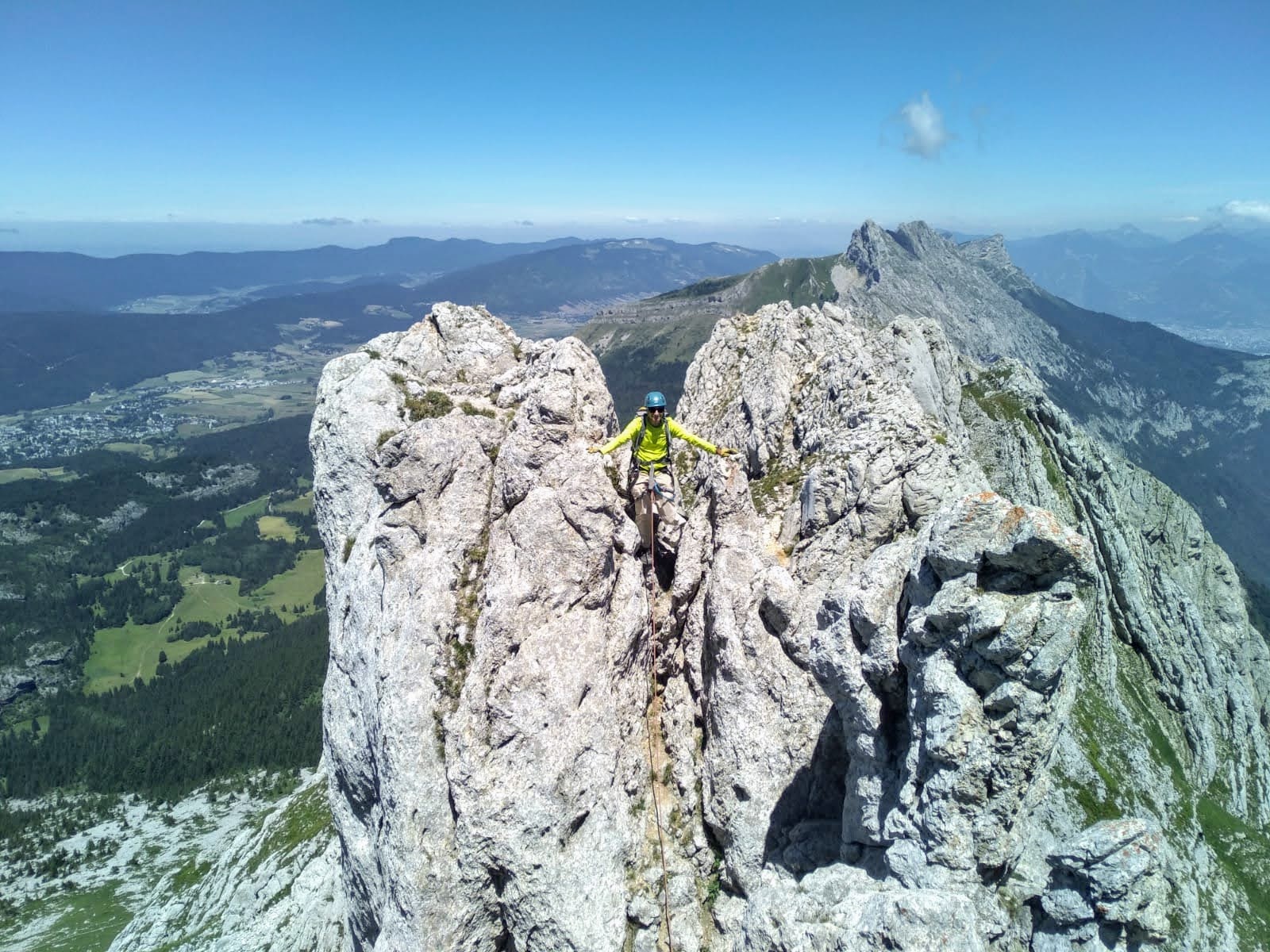 Une semaine avant l’ascension puis la traversée des arêtes du Gerbier dans le Vercors, Olivier et moi étions presque certains de partir dans le massif du Mont Blanc pour effectuer l’escalade de l’aiguille du Grépon qui culmine à 3 482 m d’altitude. Le covid-19 en a décidé autrement. Un an après avoir été fortement secoué par cette merde, Olivier est de nouveau tombé légèrement malade, le virus l’affaiblissant au point de devoir déclarer forfait. Notre guide Pierre Lainé a très bien compris la situation et nous le remercions pour sa compréhension et souplesse. Cela dit, je restais sur ma faim, et plutôt que d’envisager Grépon-Mer de Glace sans mon copain de cordée, j’ai décidé de me lancer de nouveau dans une escalade en moyenne montagne, ayant beaucoup apprécié l’an dernier la montée au Mont Aiguille par la voie de la Tour des Gémeaux.