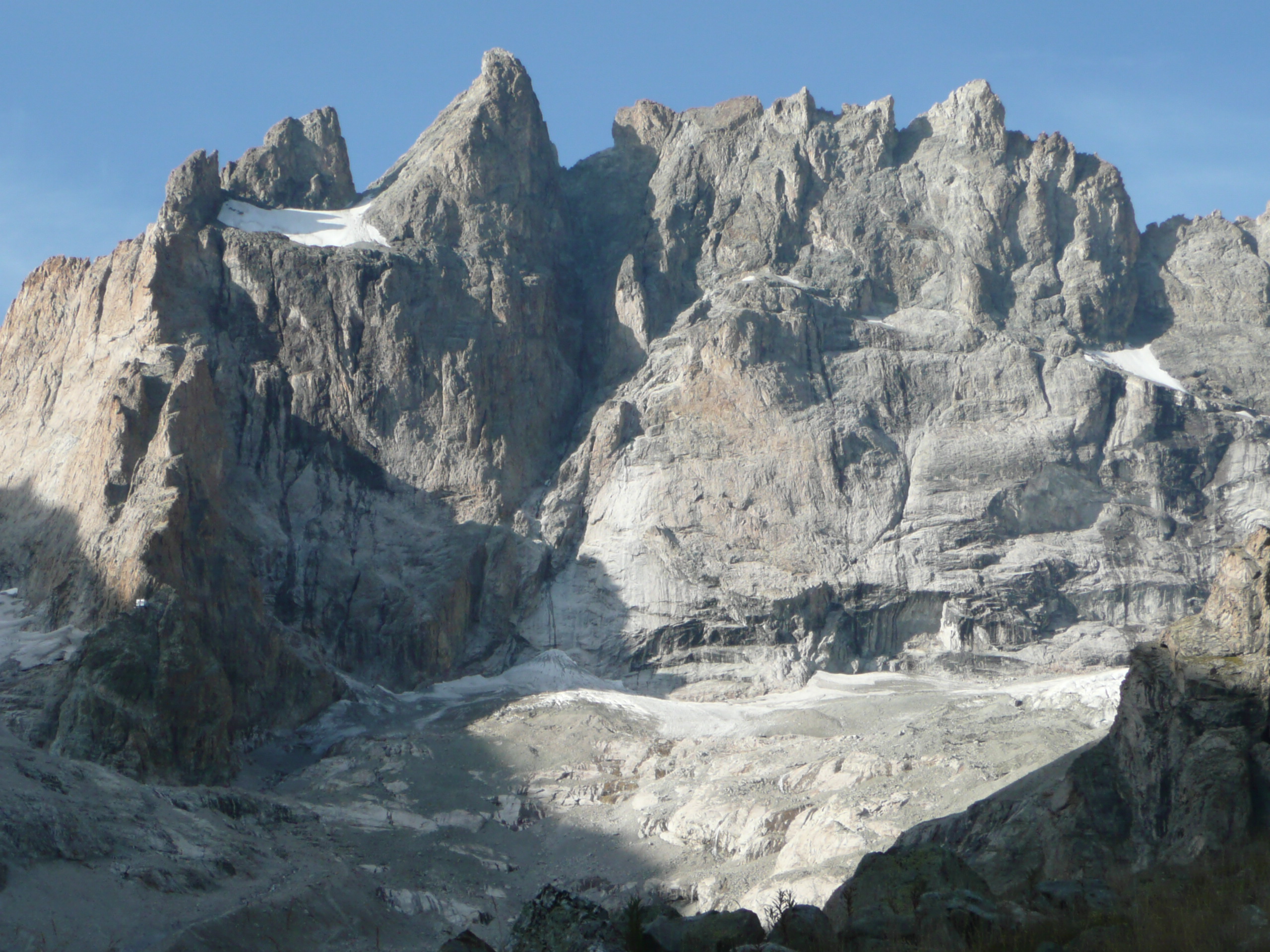Après avoir profité du soleil, de l’ambiance, de la gentillesse de la propriétaire et de sa bonne cuisine, le cap est mis en direction de notre premier refuge, le confortable Chatelleret que nous atteignons en environ 2 heures. La paisible remontée de la vallée est un enchantement accessible à tous. Le paysage est grandiose et quelques sommets majeurs des Écrins se dévoilent les uns après les autres, dont celui de la Grande Ruine ; un nom qui, à lui seul, impressionne le novice que je suis. Puis, peu à peu, nous distinguons le refuge et, derrière lui, une gigantesque muraille : la Meije que je découvre pour la première fois. Impossible d’aller plus loin, la vallée se termine brutalement devant cette montagne de près de 4000 m de haut. Pourtant, accroché à ses flancs, le minuscule refuge du Promontoire indique qu’il est néanmoins possible de la franchir, la traverser puis redescendre sur le versant opposé. Une chevauchée qui évidemment me fait rêver et frissonner à la fois.